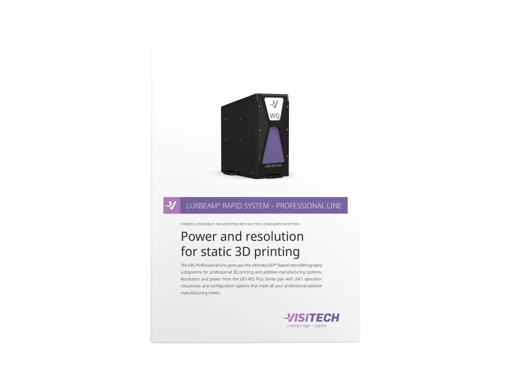 The LRS-Professional Line provides the ultimate DLP®-based stereolithography subsystems for professional 3D printing and additive manufacturing systems, with unmatched resolution and power.
