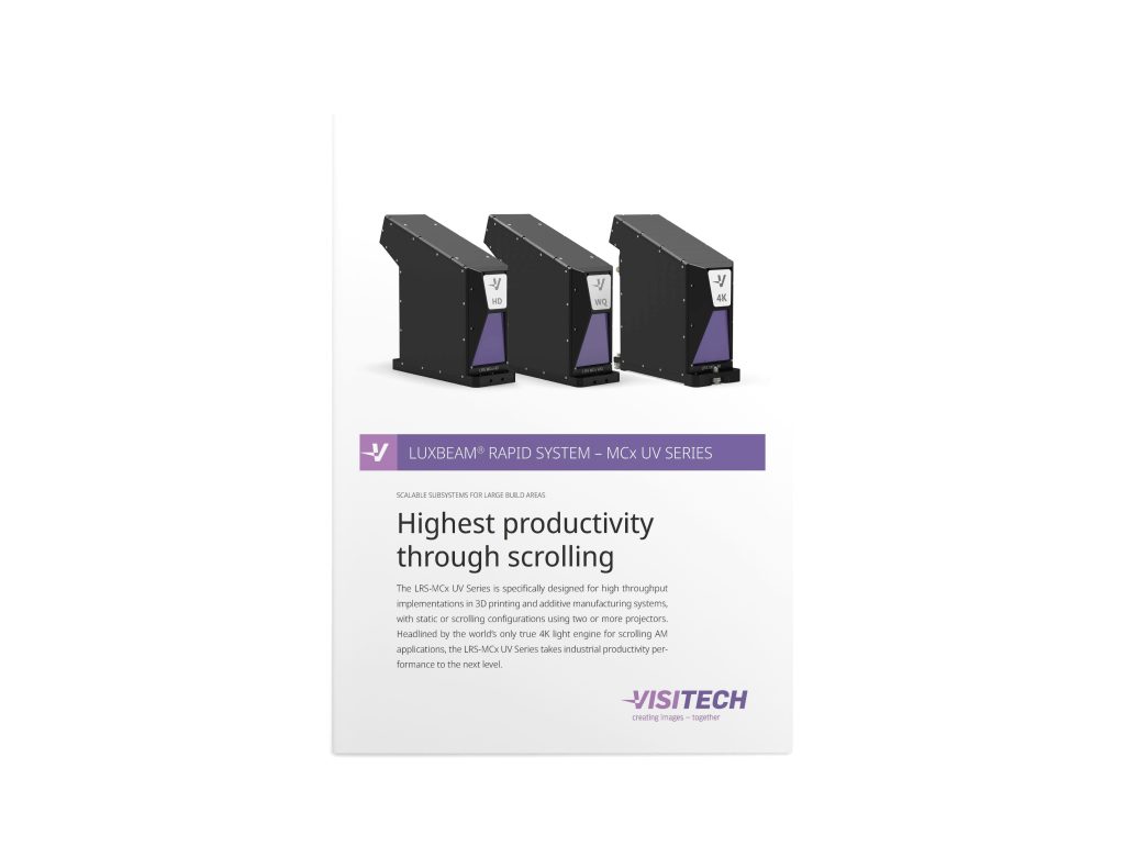 The LRS-MCx UV Series is headlined by the world’s only true 4K light engine for scrolling AM applications, taking industrial productivity performance to the next level.