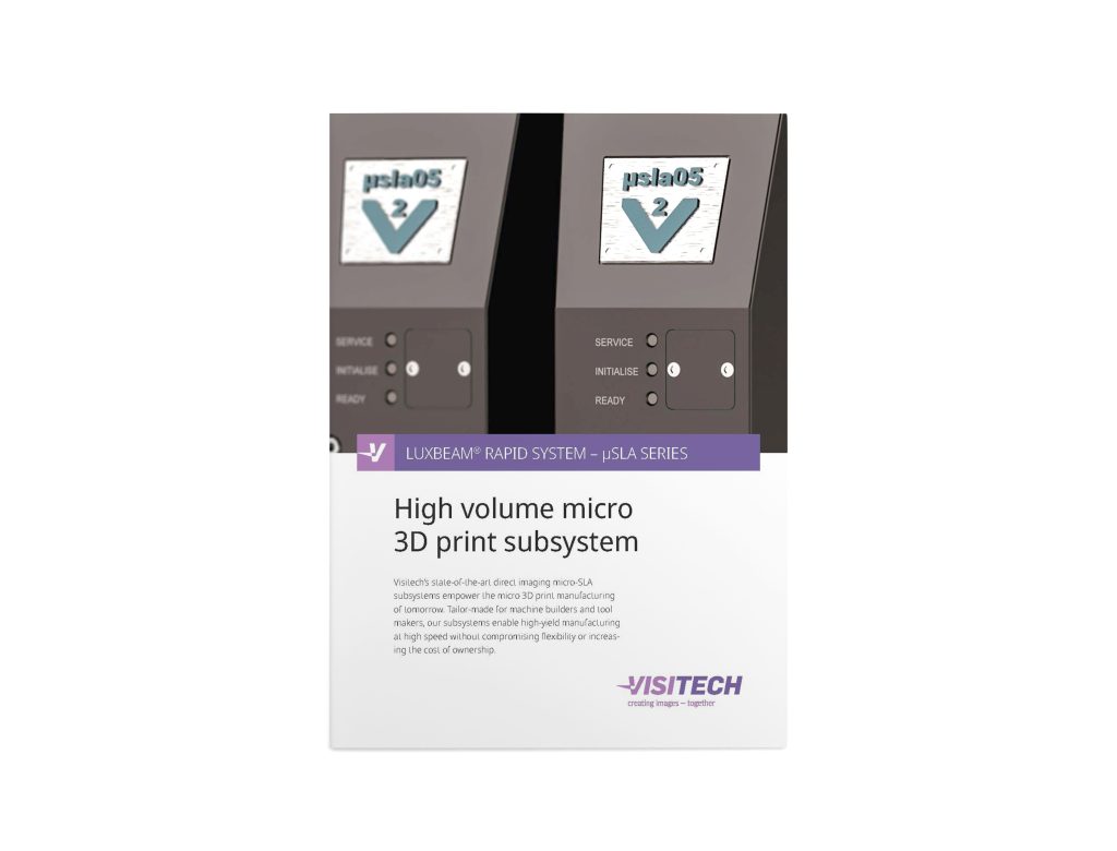 State-of-the-art direct imaging micro-SLA subsystem that empowers the micro 3D print manufacturing of tomorrow. Enable high-yield manufacturing at high speed without compromising flexibility or increasing the cost of ownership.